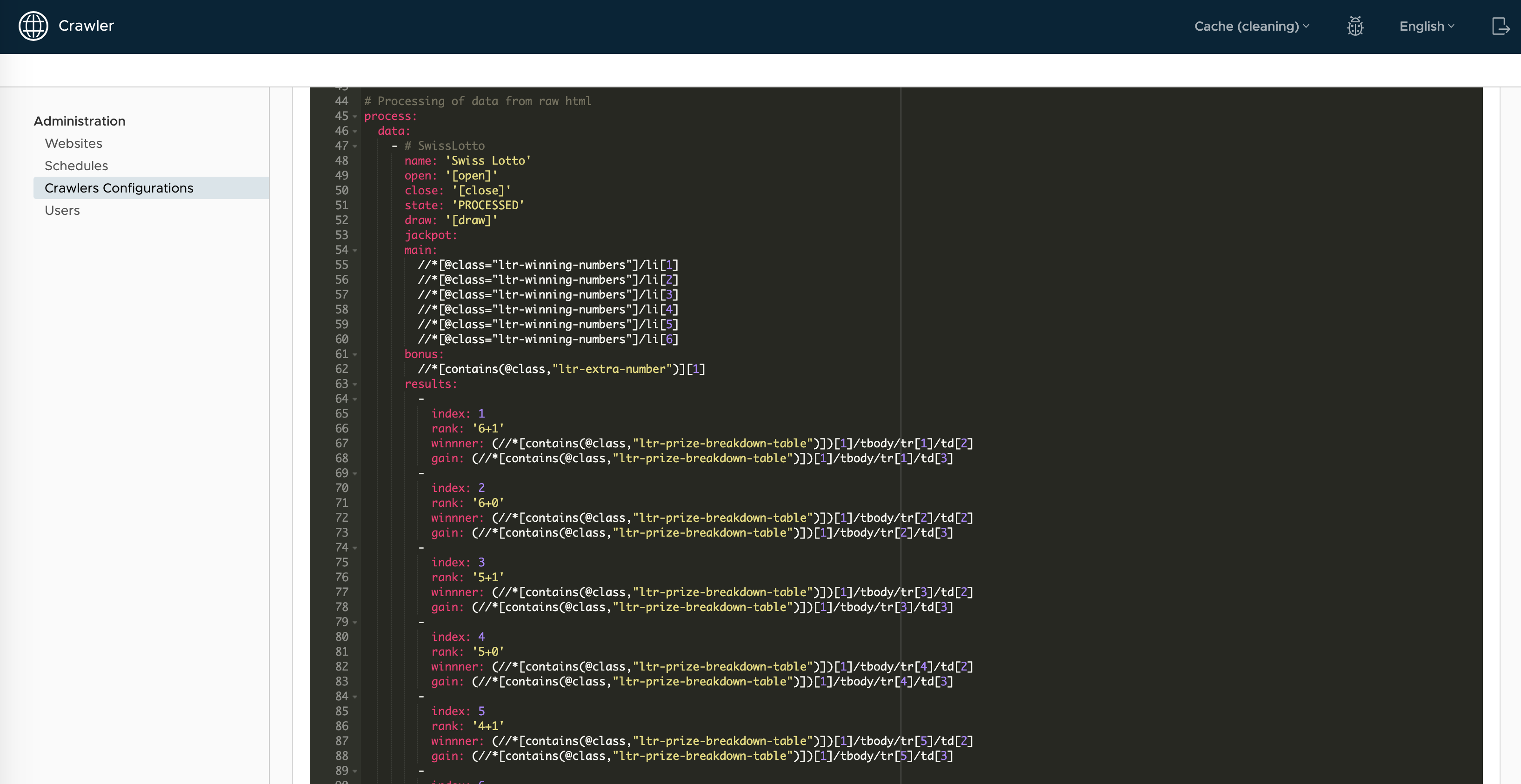 Its architecture relies on a set of YAML configurations that outline the structure of the data to be stored in the database. For each property to be filled, the system specifies the location on the web page(s) where retrieval is desired. The system also incorporates a pseudo-syntax control language, facilitating the automatic conversion and reprocessing of the retrieved data.