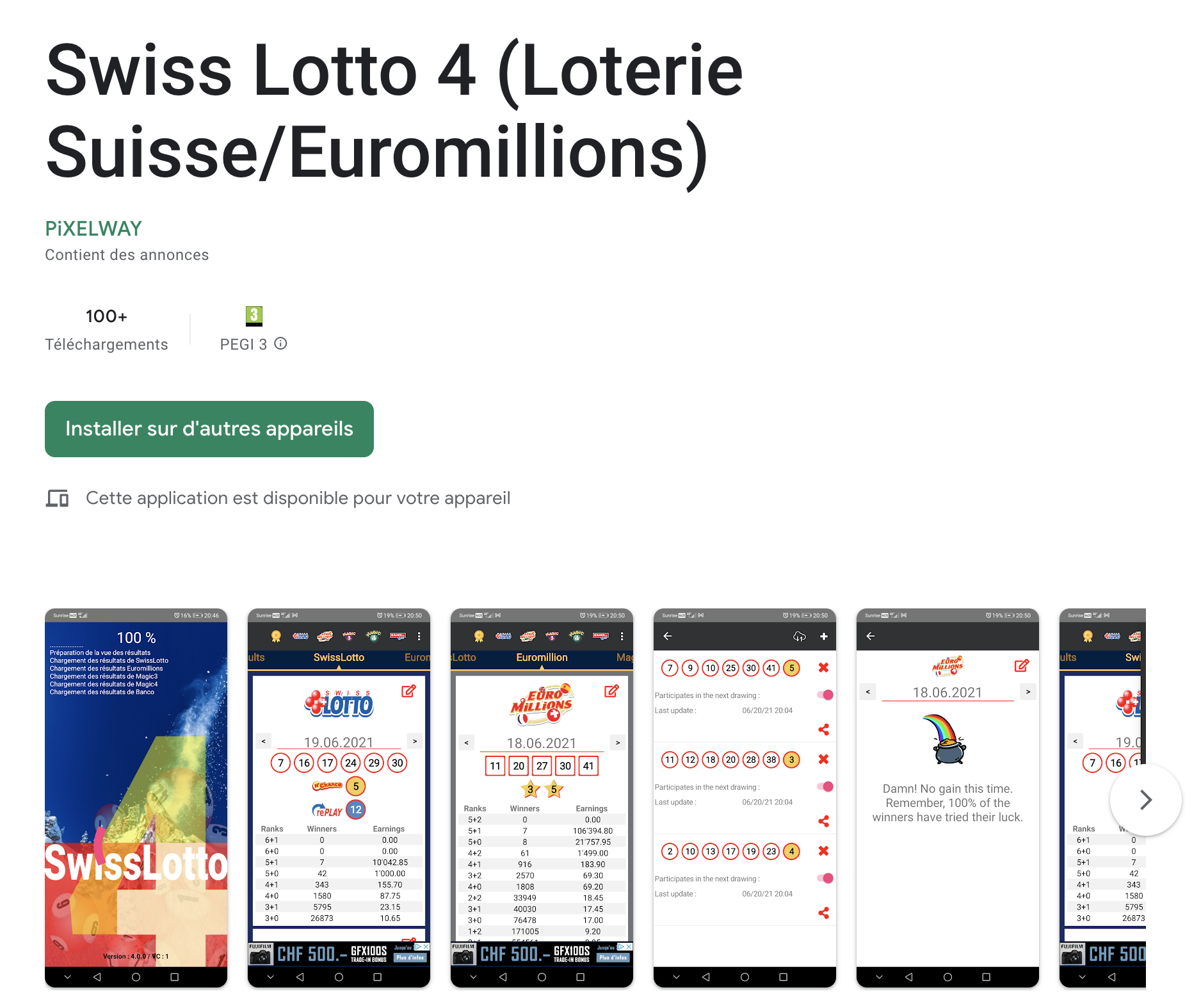 SwissLotto is a user-friendly application crafted to deliver game results (SwissLotto, Euromillions, Magic 3, Magic 4, and Banco) directly to your Android mobile device.